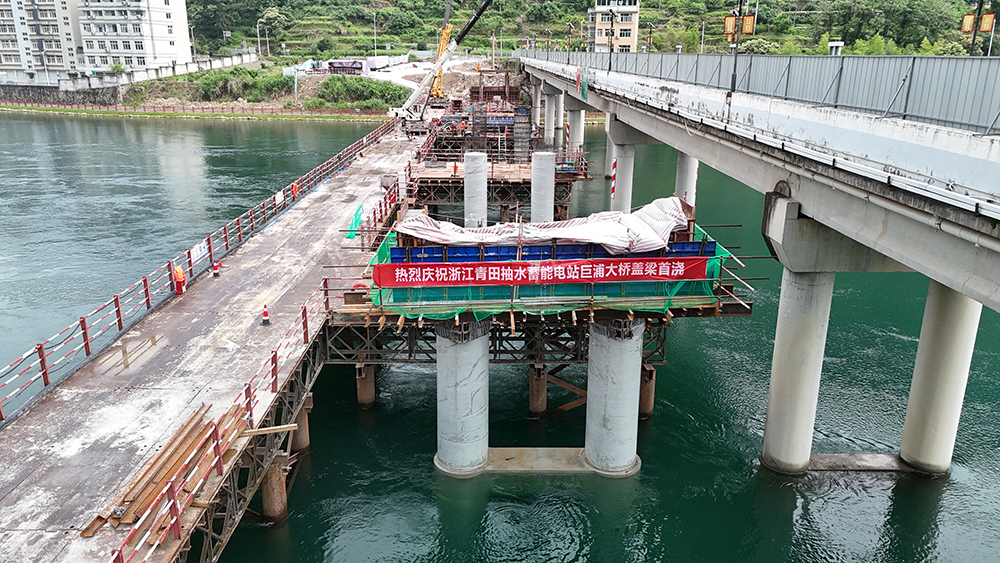 青田抽蓄巨浦大橋拼寬工程蓋梁首件澆筑完成