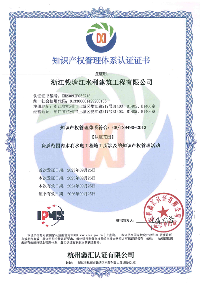 知識產權管理體系認證證書