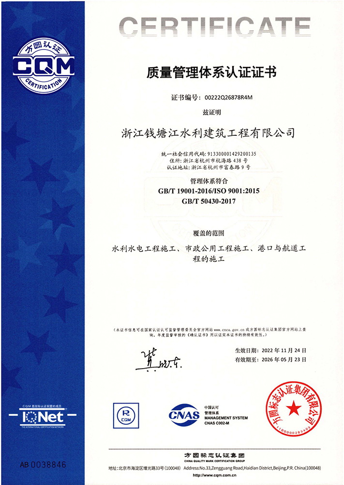 質量管理體系認證證書
