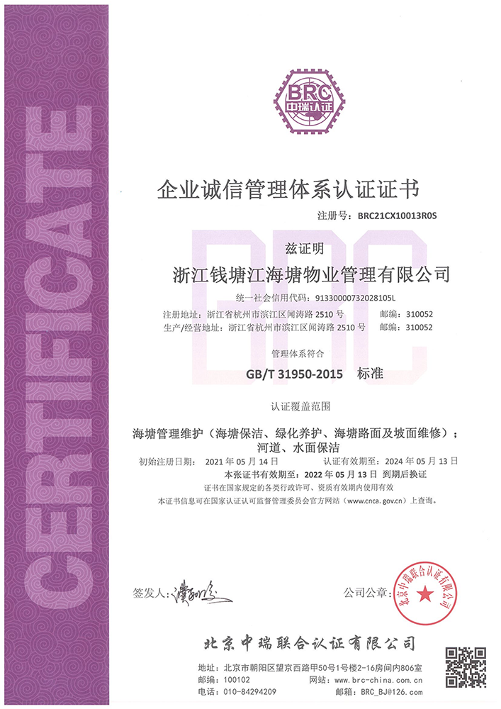 誠信管理體系認證證書