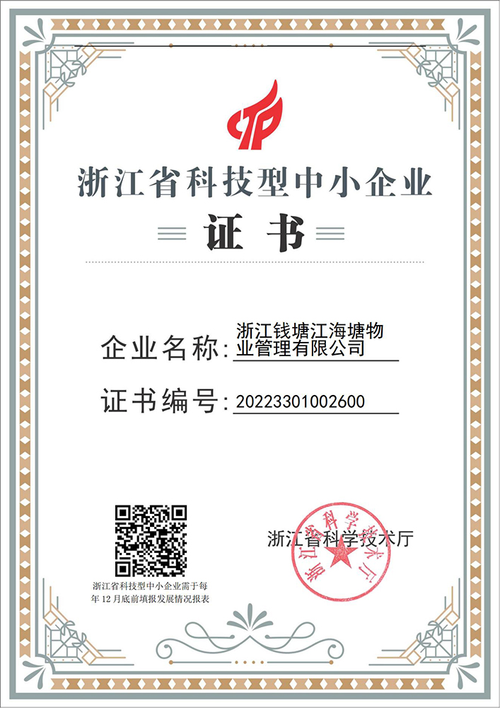 省科技型中小企業證書-海塘物業