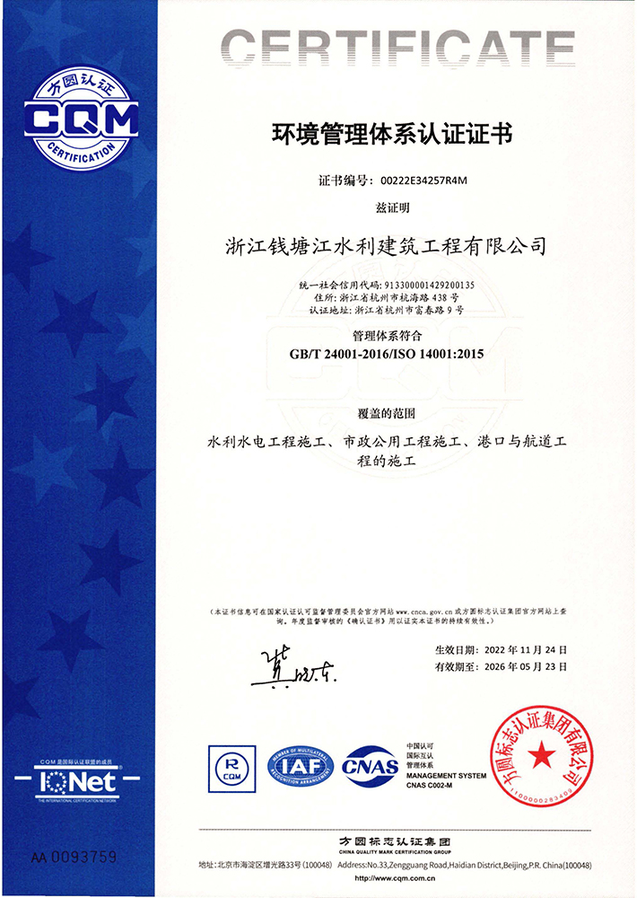 環境管理體系認證證書