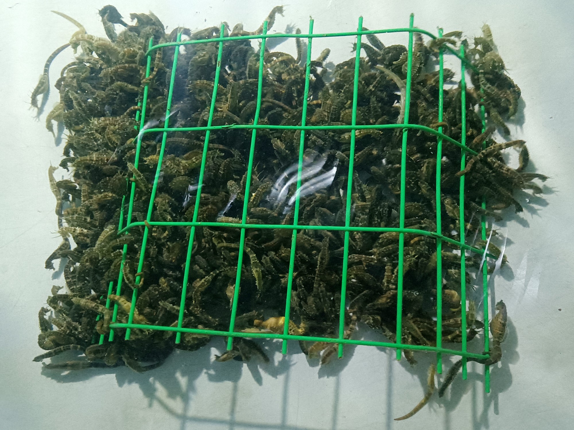 專家組聽取了項目工作匯報,查閱了相關(guān)資料,并對膨腹海馬親體、苗種的規(guī)格和數(shù)量進(jìn)行現(xiàn)場核查。結(jié)果顯示,該項目共保有親體2.43萬尾,養(yǎng)殖密度達(dá)203尾/m3;個體全長范圍12~17 cm,平均全長14.4 cm;體質(zhì)量范圍8.2~13.2 g,平均體質(zhì)量10.49 g。項目累計培育苗種數(shù)量125萬尾,培育密度2139尾/m3;苗種全長范圍2.4~7.1 cm,平均全長4.2 cm;體質(zhì)量范圍0.02~0.7 g,平均體質(zhì)量0.2 g。各項指標(biāo)均符合驗收標(biāo)準(zhǔn)。