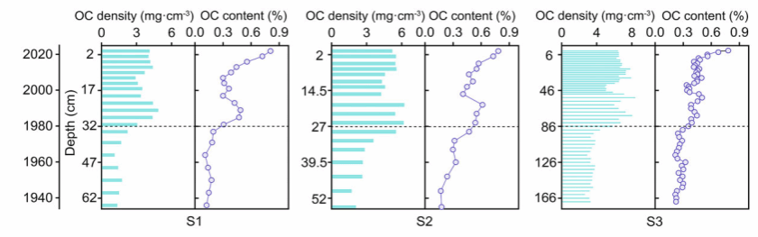 基于210Pb定年的沉積物有機(jī)碳垂向變化