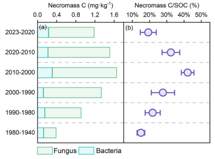 不同歷史時(shí)期微生物殘?bào)w的含量及在總有機(jī)碳中的比例