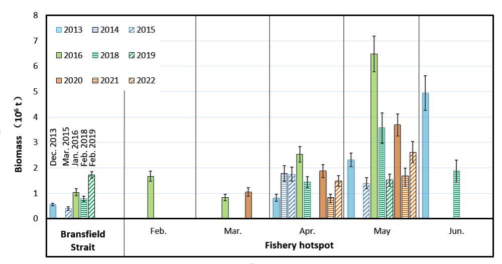 布蘭斯菲爾德海峽漁業(yè)熱區(qū)南極磷蝦生物量評估