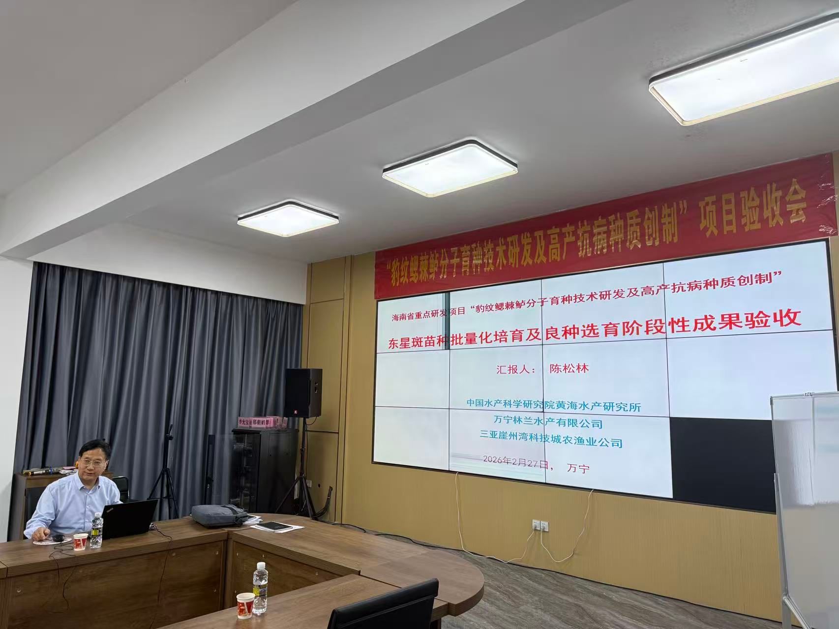2月27日,海南省水產(chǎn)技術(shù)推廣站組織相關(guān)專家,在海南省萬寧林蘭水產(chǎn)養(yǎng)殖有限公司藍田種業(yè)基地對中國水產(chǎn)科學(xué)研究院黃海水產(chǎn)研究所陳松林院士主持、萬寧林蘭水產(chǎn)養(yǎng)殖有限公司等參加的海南省重點研發(fā)項目“豹紋鰓棘鱸分子育種技術(shù)研發(fā)及高產(chǎn)抗病種質(zhì)創(chuàng)制”中的苗種人工繁育、品種選育等階段性成果進行了現(xiàn)場驗收。驗收專家組由海南大學(xué)周永燦教授、海南熱帶海洋學(xué)院黃海教授、中國熱帶農(nóng)業(yè)科學(xué)院熱帶生物技術(shù)研究所胡永華研究員組成,驗收會由海南省水產(chǎn)技術(shù)推廣站站長劉天密主持。