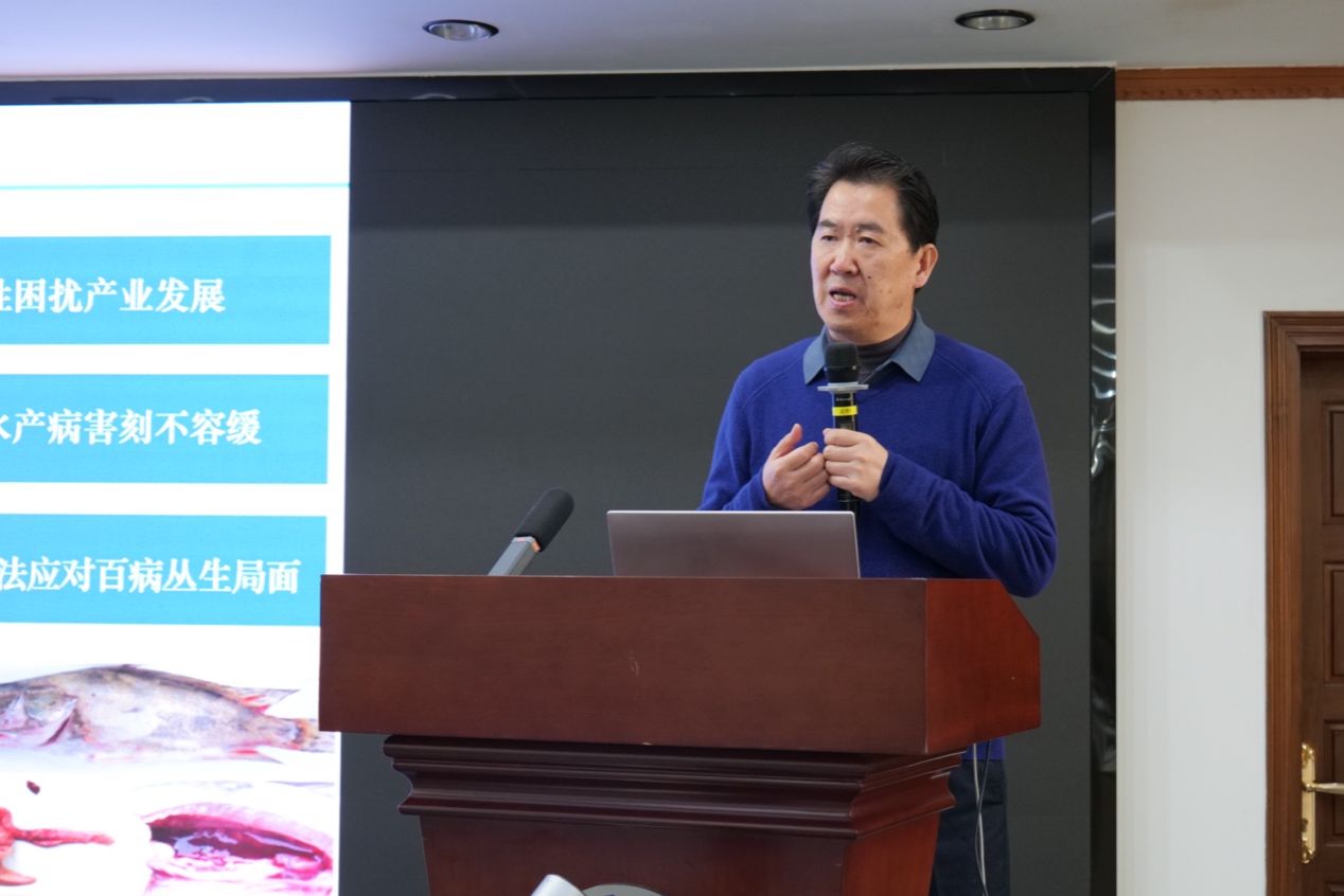 2月28日至3月1日,由中國(guó)水產(chǎn)科學(xué)研究院黃海水產(chǎn)研究所牽頭的國(guó)家重點(diǎn)研發(fā)計(jì)劃“海洋農(nóng)業(yè)與淡水漁業(yè)科技創(chuàng)新”重點(diǎn)專(zhuān)項(xiàng)“水產(chǎn)病害的綠色漁藥開(kāi)發(fā)與精準(zhǔn)防治技術(shù)”項(xiàng)目2025年度總結(jié)暨2026年度推進(jìn)會(huì)在上海召開(kāi),農(nóng)業(yè)農(nóng)村部科技發(fā)展中心項(xiàng)目專(zhuān)員豐程程、中國(guó)水產(chǎn)科學(xué)研究院項(xiàng)目專(zhuān)員賈宜珺、中國(guó)獸醫(yī)藥品監(jiān)察所張存帥研究員、四川農(nóng)業(yè)大學(xué)汪開(kāi)毓教授、浙江省淡水水產(chǎn)研究所沈錦玉研究員、華東理工大學(xué)劉琴教授、寧波大學(xué)李成華教授、江蘇省海洋水產(chǎn)研究所萬(wàn)夕和研究員、上海海洋大學(xué)呂利群教授、中國(guó)水產(chǎn)科學(xué)研究院黃海水產(chǎn)研究所副所長(zhǎng)葉乃好研究員、華東理工大學(xué)副校長(zhǎng)趙黎明教授及項(xiàng)目組成員等60余人參會(huì)。會(huì)議由黃海所科研處處長(zhǎng)劉志鴻研究員主持。