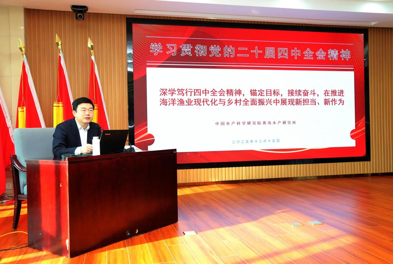 12月15日,中國水產(chǎn)科學(xué)研究院黃海水產(chǎn)研究所舉辦學(xué)習(xí)貫徹黨的二十屆四中全會精神宣講報告會。黃海所黨委委員、副所長榮小軍作專題宣講報告,全所240余名黨員干部參加。