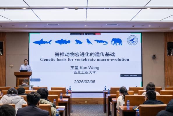 胡鵬教授作了題為“基因組學技術研發(fā)與魚類抗性遺傳機制解析”的學術報告,系統(tǒng)闡述了母源因子在胚胎低溫脅迫存活中的關鍵功能及中性粒細胞免疫狀態(tài)轉(zhuǎn)變的表觀調(diào)控機制。王堃教授作了題為“脊椎動物宏進化的遺傳基礎”的學術報告,詳細介紹了趨同演化、基因組創(chuàng)新及基因功能重塑等關鍵機制,并為“間斷平衡”演化理論提供了重要的遺傳學證據(jù)。杜康研究員作了題為“魚類多倍體基因組的形成與演化”的學術報告,指出了多倍體演化與水產(chǎn)的重要聯(lián)系,闡明了同源多倍體和異源多倍體的形成方式和后續(xù)演化軌跡的差異以及可能的原因。三場報告引起了與會科研人員和研究生的熱烈反響,大家圍繞感興趣的問題展開了深入交流與討論,現(xiàn)場學術氛圍濃厚。