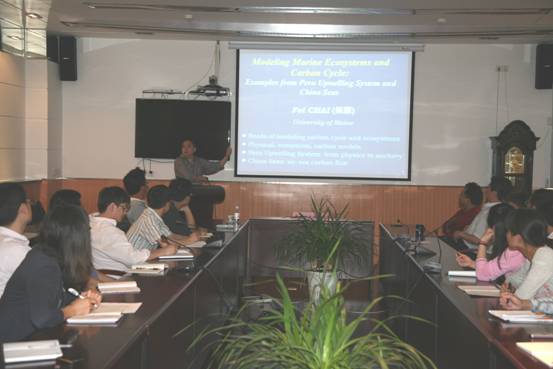 6月9日,美國緬因大學海洋科學學院柴扉教授應邀到黃海所參觀訪問,并為黃海所有關(guān)科研人員做了題為“Modeling Marine Ecosystems and Carbon Cycle: Examples from Peru Upwelling System and China Seas”的學術(shù)報告,柴扉教授以秘魯上升流系統(tǒng)和中國海為例,講述了生物地球化學模型的構(gòu)建和應用以及相關(guān)碳循環(huán)研究。學術(shù)交流前,唐啟升院士接見了柴扉教授。