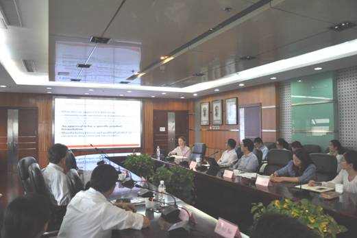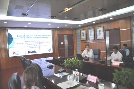 會上,李健副所長對Merton Smith主任一行的到訪表示熱烈歡迎,并簡要介紹了中國水產(chǎn)養(yǎng)殖業(yè)的發(fā)展現(xiàn)狀和前景以及黃海所的歷史、機(jī)構(gòu)設(shè)置、主要研究方向和科研成果等。Merton Smith主任介紹了美國FDA獸藥獸醫(yī)中心的組織機(jī)構(gòu)和人員組成、主要職能和管理范圍以及國際合作與交流活動等。Stacey Gore博士專門針對水產(chǎn)用藥物的審批問題,從審批流程、相關(guān)規(guī)定和指導(dǎo)原則、藥物有效性評價的方法、指標(biāo)和影響因素以及疾病模型等多個方面進(jìn)行了詳細(xì)介紹。雙方與會人員還就感興趣的問題開展了廣泛的交流與討論。