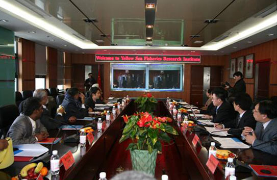 王清印所長首先對也門政府漁業(yè)代表團(tuán)的到訪表示熱烈歡迎,并希望通過也門政府漁業(yè)代表團(tuán)的到訪,加深中國和也門漁業(yè)界的了解,并建立起良好的合作關(guān)系。金顯仕副所長向來賓介紹了黃海所的學(xué)科設(shè)置、重點(diǎn)研究領(lǐng)域、重點(diǎn)研究方向、人才培養(yǎng),以及國際間的合作與交流等方面情況;隨后,雙方就各自關(guān)心的問題進(jìn)行了廣泛交談,探討了合作交流的可能性。