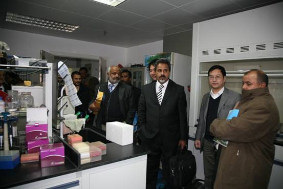 交談結(jié)束后,也門政府漁業(yè)代表團(tuán)在金顯仕副所長的陪同下參觀了黃海所海洋產(chǎn)物資源與酶工程實(shí)驗(yàn)室、種質(zhì)資源與工程育種實(shí)驗(yàn)室和水產(chǎn)品安全與質(zhì)量檢測研究室,聽取了各部門負(fù)責(zé)人的詳細(xì)介紹。