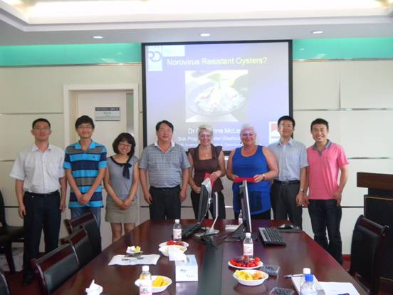 訪問期間,Catherine博士為黃海所有關(guān)科研人員做了題為“Norovirus Resistant Oysters”的學(xué)術(shù)報(bào)告,并就合作項(xiàng)目的研究進(jìn)展和下一步工作計(jì)劃與黃海所有關(guān)專家進(jìn)行了座談。