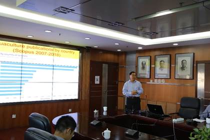 會(huì)上,李健副所長(zhǎng)對(duì)秦建光教授來(lái)訪表示歡迎,并簡(jiǎn)要介紹了黃海水產(chǎn)研究所歷史沿革、研究領(lǐng)域、科研成果、人才培養(yǎng)、產(chǎn)業(yè)支撐等方面的情況,希望雙方能夠在科學(xué)研究和人才交流等方面繼續(xù)加強(qiáng)合作,共同推動(dòng)海水養(yǎng)殖業(yè)健康發(fā)展。秦建光教授對(duì)黃海水產(chǎn)研究所的熱情接待表示感謝,并作了題為“Aquaculture Research Status, Achievement and Perspective”的報(bào)告,深入剖析了世界水產(chǎn)養(yǎng)殖在近幾十年取得快速發(fā)展的原因,以及未來(lái)水產(chǎn)養(yǎng)殖業(yè)將要面臨的機(jī)遇與挑戰(zhàn)。隨后,秦建光教授作了題為“Tips on writing scientific journal papers”的講座,從作者、編輯和審稿人等不同角度,系統(tǒng)闡述了如何寫好一篇學(xué)術(shù)論文,引起了大家的廣泛興趣和熱烈討論。與會(huì)人員還探討了在海水養(yǎng)殖領(lǐng)域的合作潛力,并討論了弗林德斯大學(xué)派學(xué)生來(lái)黃海水產(chǎn)研究所訪學(xué)的相關(guān)事宜,為今后開(kāi)展具體的合作研究和人員互訪打下了堅(jiān)實(shí)基礎(chǔ)。
