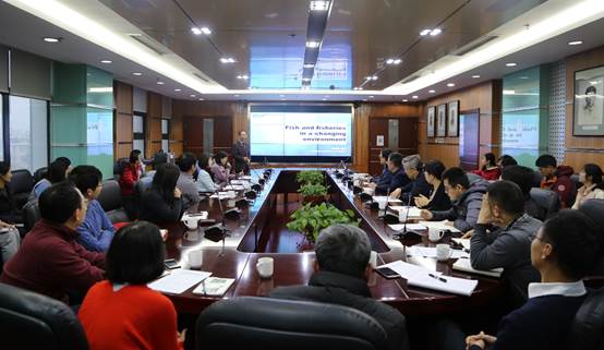 會上,金顯仕所長對Suam Kim教授來所訪問交流表示歡迎,他表示,Suam Kim教授是國際著名漁業(yè)海洋學家,為世界漁業(yè)資源可持續(xù)發(fā)展作出了重要貢獻,希望雙方借此次契機,加強溝通對接,推動務實合作,為進一步推動中韓漁業(yè)科技交流作出積極貢獻。會上,Suam Kim教授作了題為“Fish and Fisheries in a Changing Environment”的學術報告,系統(tǒng)介紹了20世紀50年代以來漁業(yè)資源變動與環(huán)境變化的關系,重點闡述了氣候變化對漁業(yè)資源變動的影響,講解了北太平洋溯河性魚類資源變動、魚類早期生活史與其資源補充和漁場形成機制與研究歷史等;他指出,海洋暖化、酸化和缺氧是當今全球變化研究的三大熱題,而如何處理好自然環(huán)境-漁業(yè)資源-人類活動這三位一體的相互關系是基于生態(tài)系統(tǒng)漁業(yè)管理模式的關鍵。唐啟升院士指出,全球變化是一個系統(tǒng)的綜合的過程,海洋生態(tài)系統(tǒng)的變化亦是一個復雜的過程,希望科研人員潛心研究,為漁業(yè)資源的可持續(xù)利用作出積極貢獻。