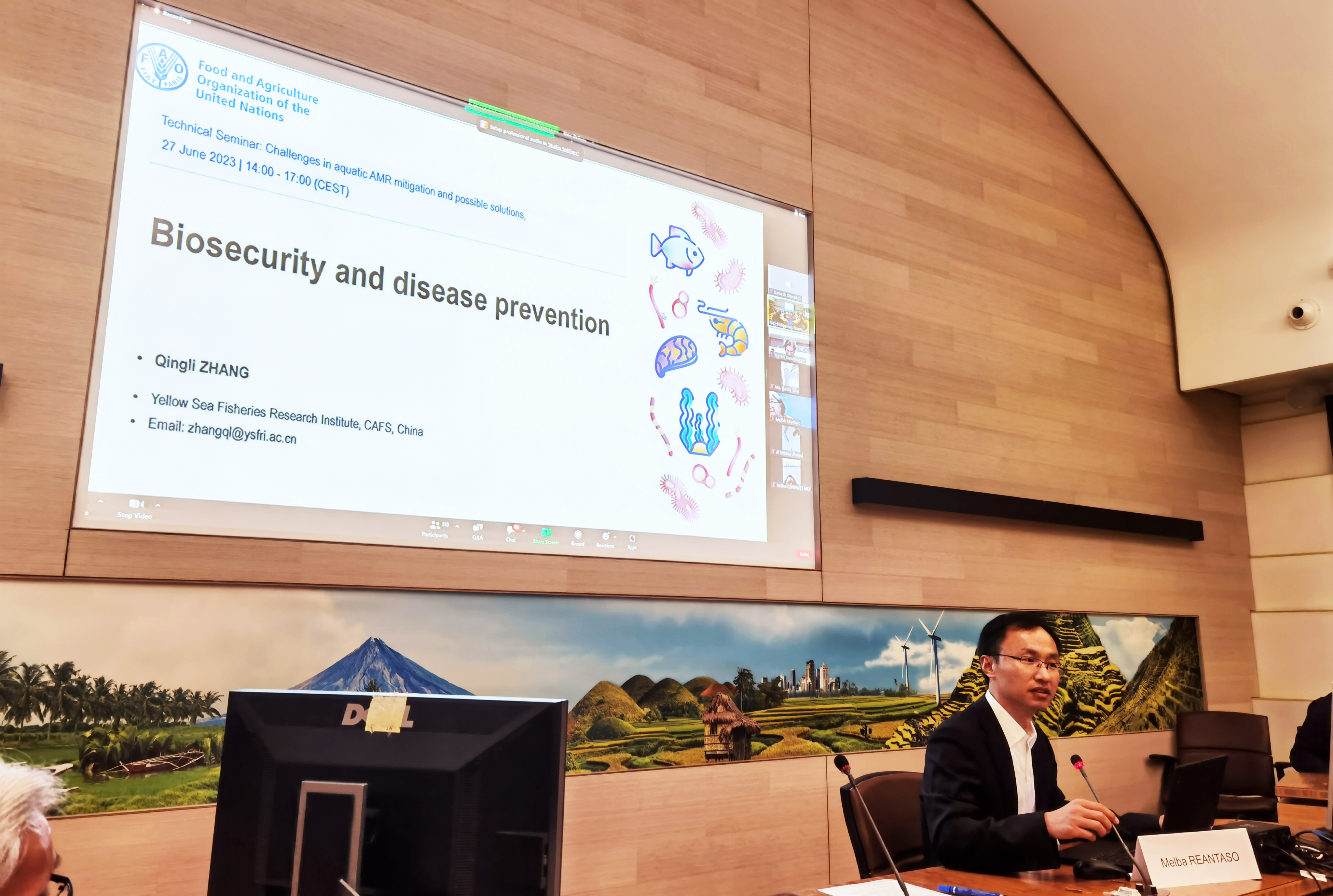 此次會議由FAO主辦,旨在協(xié)助FAO各成員國在水產(chǎn)養(yǎng)殖中減少抗菌藥物使用,提升水產(chǎn)養(yǎng)殖生物安全保障技術(shù)水平。會議的召開,代表著全球4個新成立的FAO參考中心正式啟動運行。黃海水產(chǎn)研究所張慶利研究員此次參會充分展示了我國在水產(chǎn)養(yǎng)殖AMR和生物安全保障方面的研究成果,詳細了解了全球水產(chǎn)養(yǎng)殖AMR和生物安全保障相關(guān)最新研究進展,加強了黃海水產(chǎn)研究所與國際同行之間的交流溝通,進一步提高了我所在國際水生動物健康管理研究領(lǐng)域的影響力。