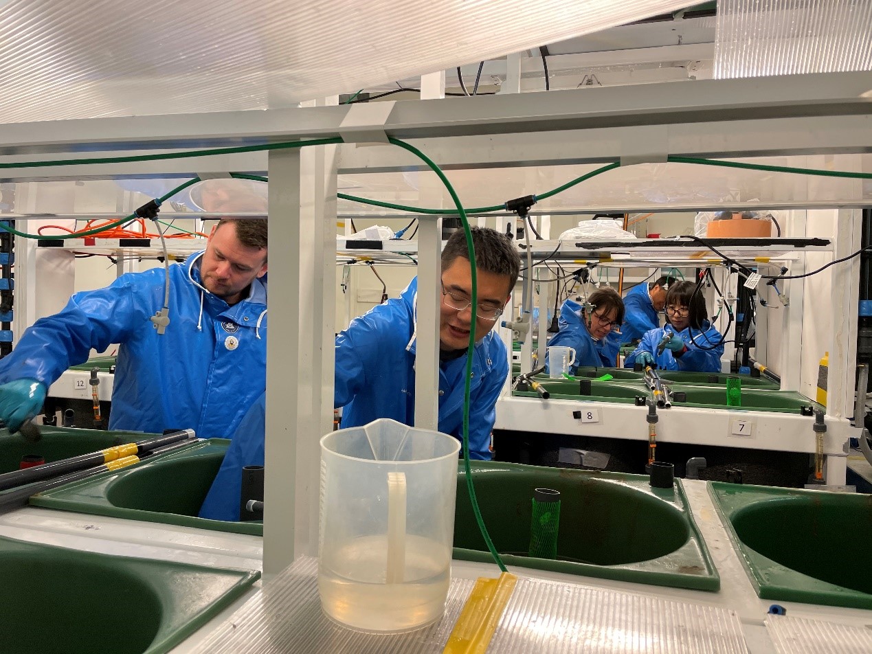 此次訪問主要針對項目總體工作進(jìn)展、項目年會組織籌備、在途實驗聯(lián)合實施、后續(xù)工作計劃等方面展開交流與討論。具體涵蓋:交流生態(tài)養(yǎng)殖模式構(gòu)建、水產(chǎn)養(yǎng)殖碳匯功能、氣候變化與水產(chǎn)養(yǎng)殖相互作用等主題工作進(jìn)展;討論、確定項目年會會議形式、會議日程、專題設(shè)置、會議規(guī)模等相關(guān)事宜;參與挪方科研人員在途進(jìn)行的海洋酸化和典型污染物脅迫下北極蛤和沙蠶生理生態(tài)響應(yīng)現(xiàn)場實驗;考察大西洋鮭養(yǎng)殖場,并交流MOM系統(tǒng)(Modelling-Ongrowing fishfarms-Monitoring,魚類網(wǎng)箱養(yǎng)殖環(huán)境健康狀況監(jiān)測系統(tǒng))在挪威魚類網(wǎng)箱養(yǎng)殖環(huán)境評價和管理方面的應(yīng)用進(jìn)展;商定挪方MOM系統(tǒng)研發(fā)人員赴中國開展現(xiàn)場考察事宜等。