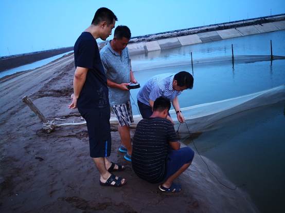 Professor Wang Yingeng and his team conduct an investigation during high temperature disaster of sea cucumber farming