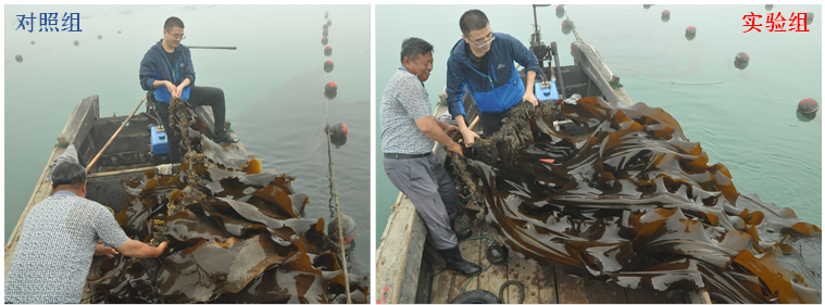 海帶新品系(右)和當(dāng)?shù)刂饕B(yǎng)殖品系(左)的對(duì)比照
