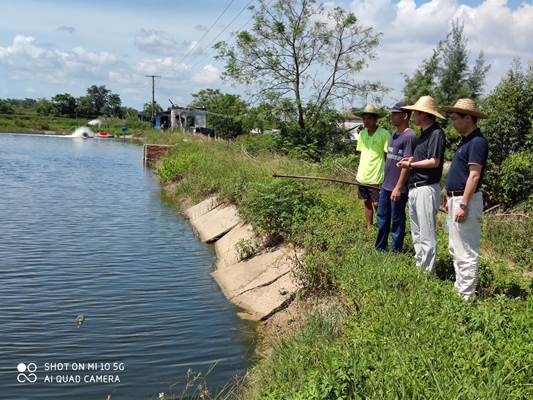 7月20日至25日,團(tuán)隊(duì)成員應(yīng)《水產(chǎn)前沿》雜志社的邀請(qǐng),參加了在廣東湛江舉行的“2020土塘高效健康生態(tài)養(yǎng)蝦技術(shù)研討會(huì)”。團(tuán)隊(duì)學(xué)術(shù)帶頭人王印庚研究員就“?;Y”的最新研究進(jìn)展及其防控技術(shù)做專(zhuān)題報(bào)告。會(huì)后,團(tuán)隊(duì)成員繼續(xù)赴廣東湛江、廣西北海、欽州等地區(qū)的對(duì)蝦育苗和養(yǎng)殖企業(yè)進(jìn)行調(diào)研,查驗(yàn)分析、科學(xué)指導(dǎo)養(yǎng)殖戶(hù)防控疾病,為一線(xiàn)養(yǎng)殖戶(hù)排憂(yōu)解難。