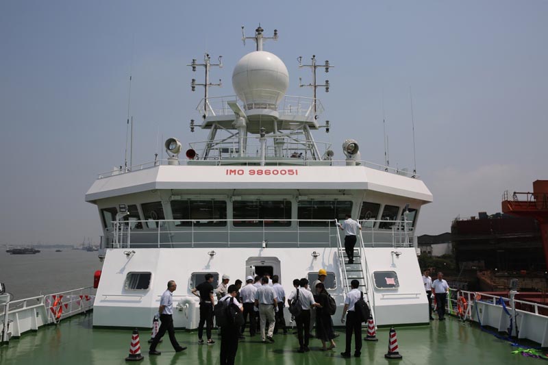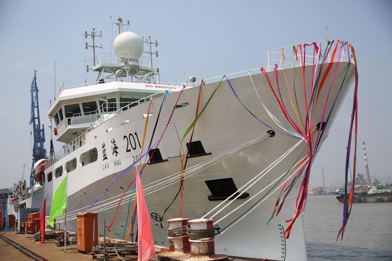 當(dāng)日,我國最大的兩艘海洋漁業(yè)綜合科學(xué)調(diào)查船“藍(lán)海101”“藍(lán)海201”在滬東中華造船(集團(tuán))有限公司正式交付使用,將以優(yōu)良的船舶性能和強(qiáng)大的科考功能服務(wù)海洋漁業(yè)資源調(diào)查。