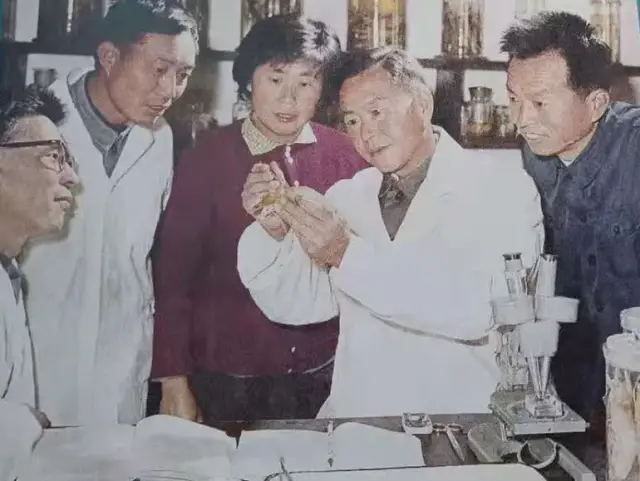 20世紀70年代趙法箴(右二)與同事觀察對蝦性腺發(fā)育情況