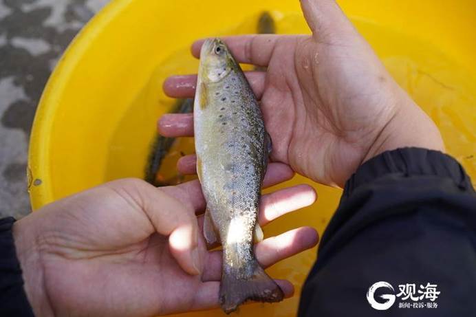漁業(yè)合作社中撈出的亞東鮭魚。