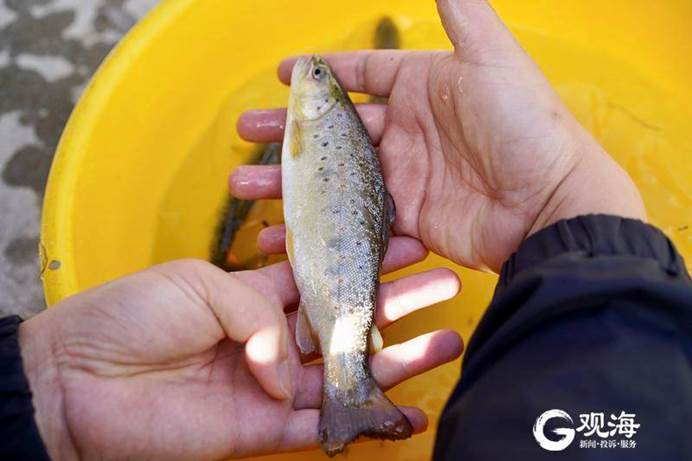 鮭魚養(yǎng)殖專業(yè)合作社中撈出的亞東鮭魚