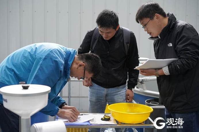 黃海所漁業(yè)科技援藏團(tuán)成員對今年培育的35萬尾魚苗進(jìn)行測長