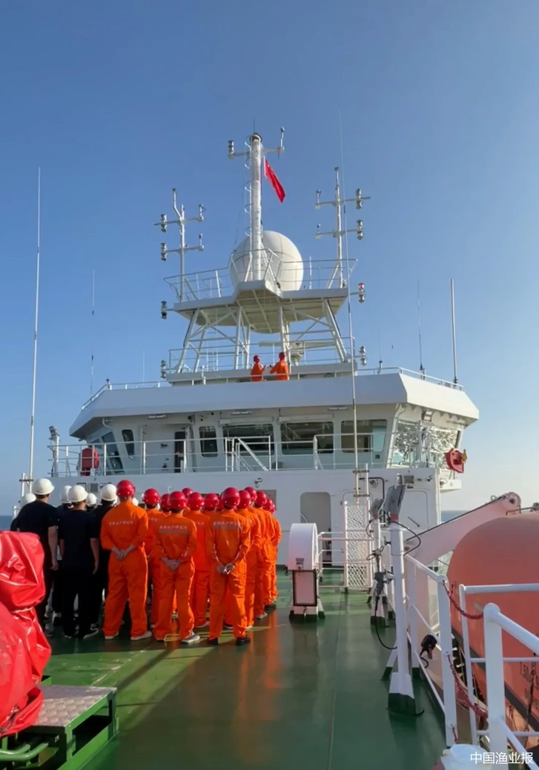 10月1日上午7時,為慶祝中華人民共和國成立72周年,正在黃海海域執(zhí)行調(diào)查任務(wù)的中國水產(chǎn)科學(xué)研究院黃海水產(chǎn)研究所3000噸級海洋漁業(yè)綜合科學(xué)調(diào)查船“藍(lán)海101”號(以下簡稱“‘藍(lán)海101’號”)全體成員,在航次首席科學(xué)家滕廣亮博士的帶領(lǐng)下舉行了升旗儀式,共同祝福偉大祖國母親繁榮昌盛。