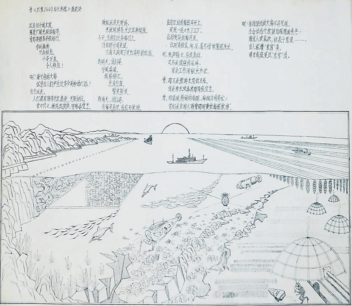 翻開(kāi)這幅《未來(lái)的海洋農(nóng)牧場(chǎng)》手繪作品,人們能看到一片熱鬧、繁華的海洋世界。書(shū)中以故事的形式描繪了如何應(yīng)用現(xiàn)代科學(xué)技術(shù)墾辟海洋農(nóng)牧場(chǎng),建立海底公園,實(shí)現(xiàn)海洋耕作、生產(chǎn)自動(dòng)化。這幅作品是我國(guó)著名海水魚(yú)類(lèi)增養(yǎng)殖學(xué)家、中國(guó)工程院院士雷霽霖受邀參加青島市科普讀物創(chuàng)作時(shí)繪就的,它承載了深深根植于雷霽霖內(nèi)心的海洋魚(yú)類(lèi)工業(yè)化養(yǎng)殖夢(mèng)。