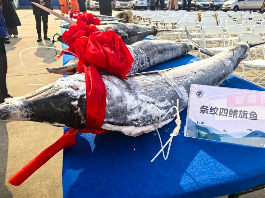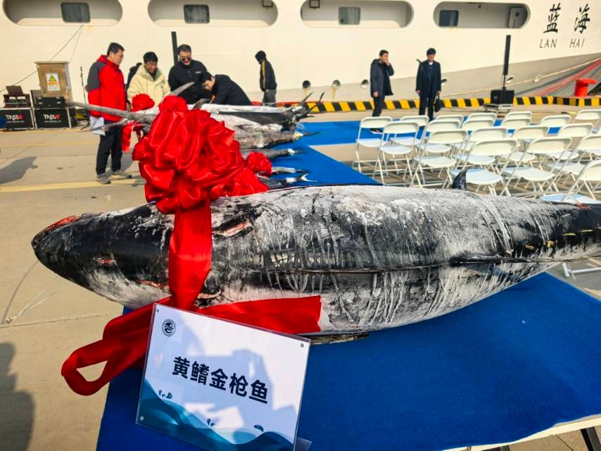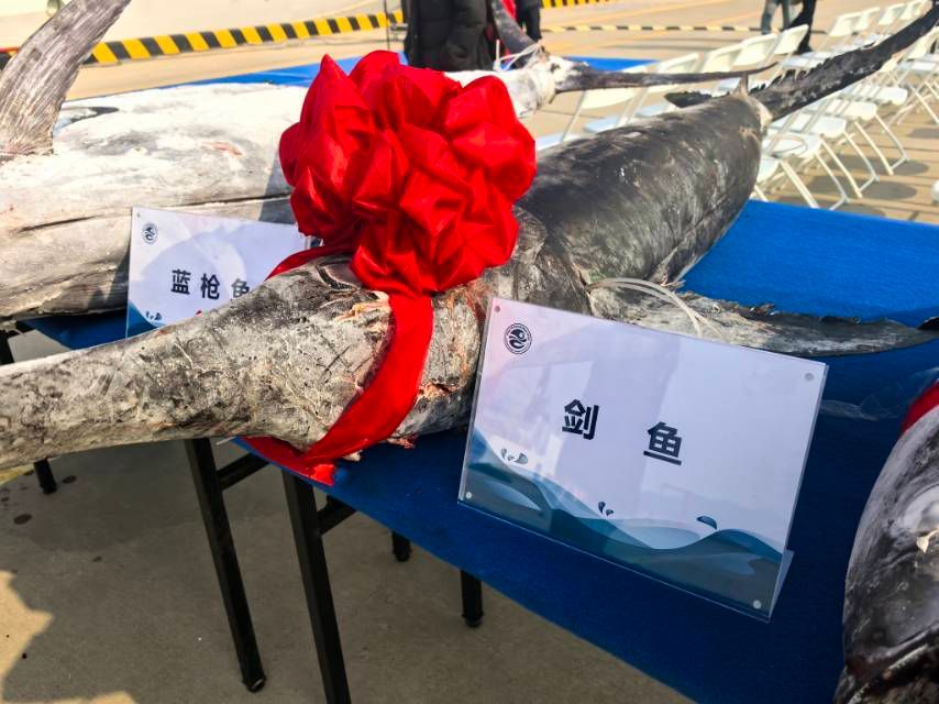 2月18日早,春寒料峭,國家深海基地碼頭上,黃鰭金槍魚、條紋四鰭旗魚、劍魚等樣品正從“藍海101”號調(diào)查船卸下,整齊地擺放在碼頭上。這是中國水產(chǎn)科學(xué)研究院黃海水產(chǎn)研究所“藍海101”號海洋漁業(yè)綜合科學(xué)調(diào)查船(以下簡稱“藍海101”號調(diào)查船)在中西印度洋公海漁業(yè)資源綜合科學(xué)調(diào)查任務(wù)中的收獲,當天“藍海101”號調(diào)查船圓滿完成航次順利返回國家深海基地碼頭。