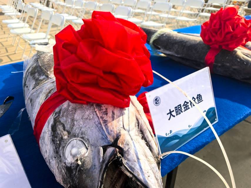 記者在現(xiàn)場發(fā)現(xiàn),每一條魚類樣品都被凍得邦邦硬。據(jù)科研人員介紹,這是在零下55度的超低溫下速凍而成,極大保留了樣品的生物活性。記者發(fā)現(xiàn),樣品中黃鰭金槍魚的個頭最大,有約200斤重,而最長的要數(shù)劍魚,長約1.5米,其余還有凹尾長鰭烏魴、大眼金槍魚等各種魚類樣品不一而足。