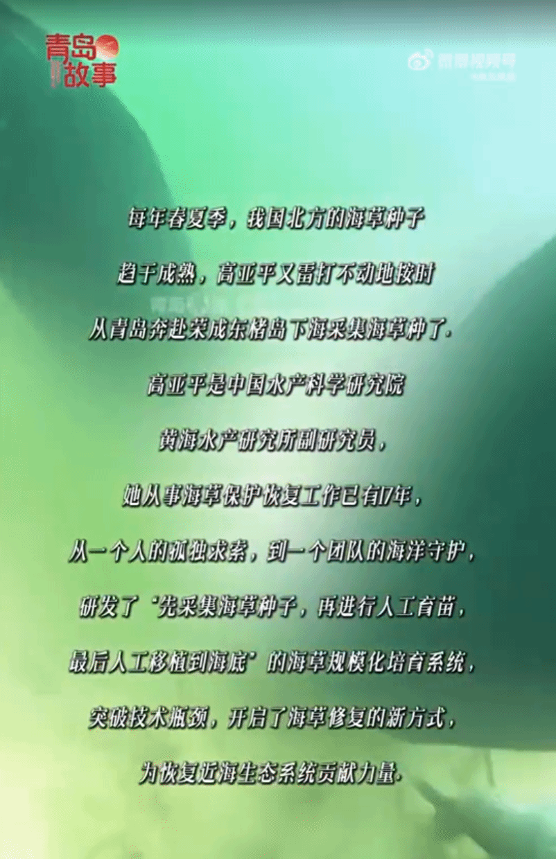 從光禿禿沙灘到成片草床,青島女博士海底種草,默默耕耘17年,為海洋做貢獻(xiàn)