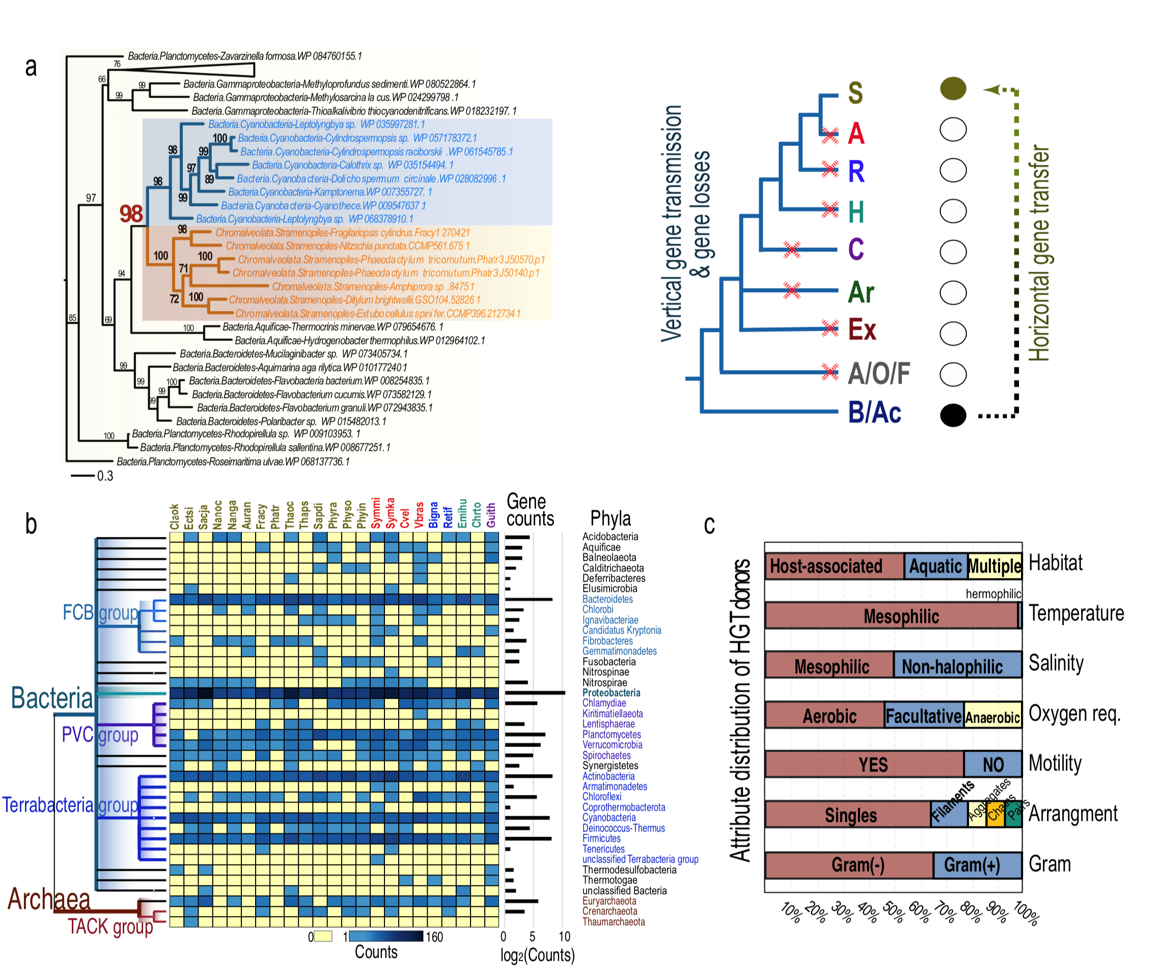 圖2 CRASH類群中HGT基因的來源及其表型