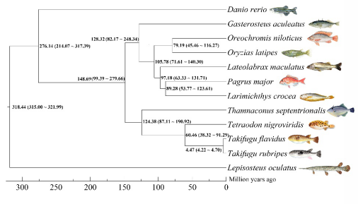 綠鰭?cǎi)R面鲀與其他硬骨魚(yú)類(lèi)的系統(tǒng)進(jìn)化樹(shù)