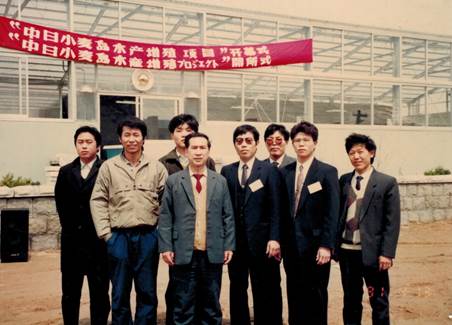 1991年,“中日小麥島水產(chǎn)增殖項(xiàng)目“開幕式合影(前排左二)