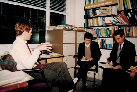 1991年,訪問英國康威研究所(左一)