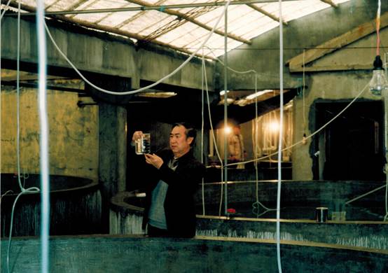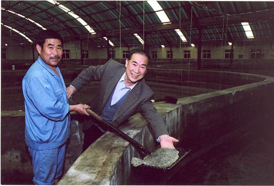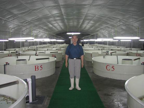 2006年5月,青島億海水產(chǎn)公司大菱鲆養(yǎng)殖車間(右一)
