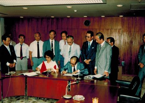 1988年,參加中日合作北戴河中心實(shí)驗(yàn)站項(xiàng)目簽約
