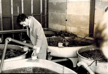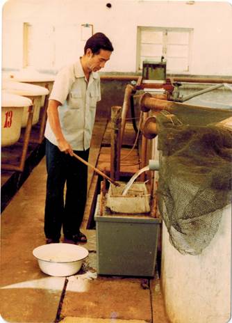 1970-1971年,青島水族館開展牙鲆育苗研究(右一)