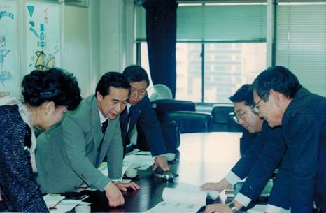 1988年,中日合作項(xiàng)目東京談判(左二)