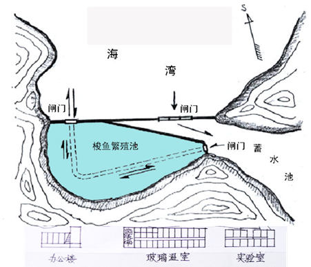 1960年,手繪日照市石臼所梭魚生態(tài)系統(tǒng)繁殖試驗(yàn)池