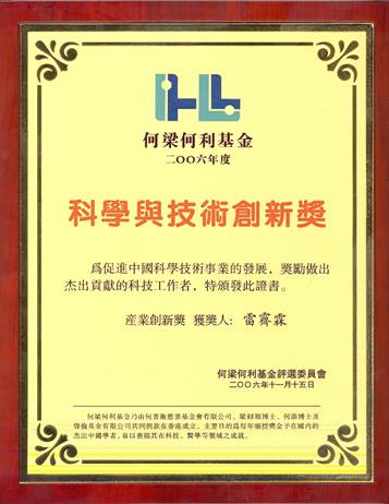 2006年,獲何梁何利基金科學(xué)與技術(shù)創(chuàng)新獎(jiǎng)