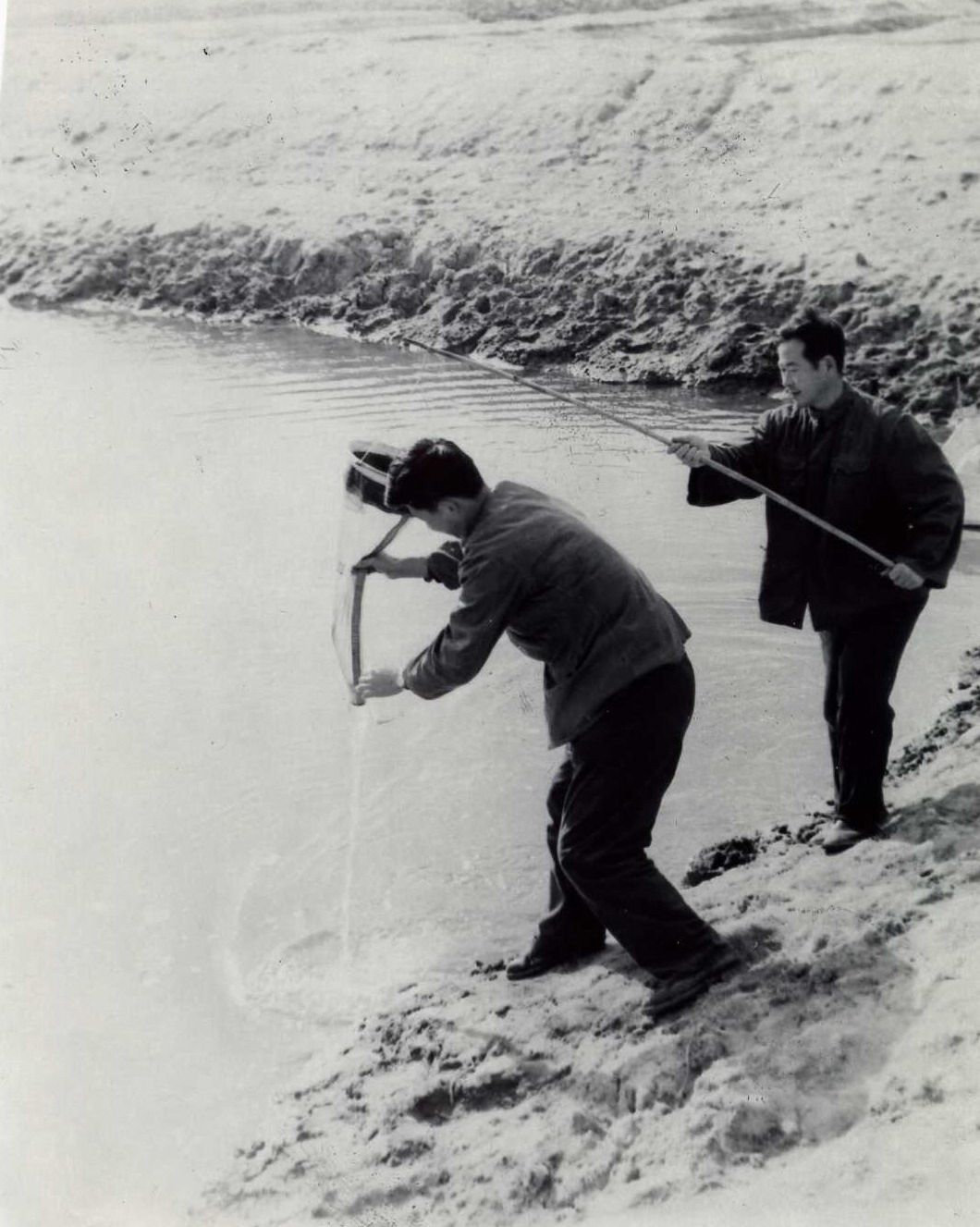 60年代趙院士觀察養(yǎng)蝦池水質(zhì)
